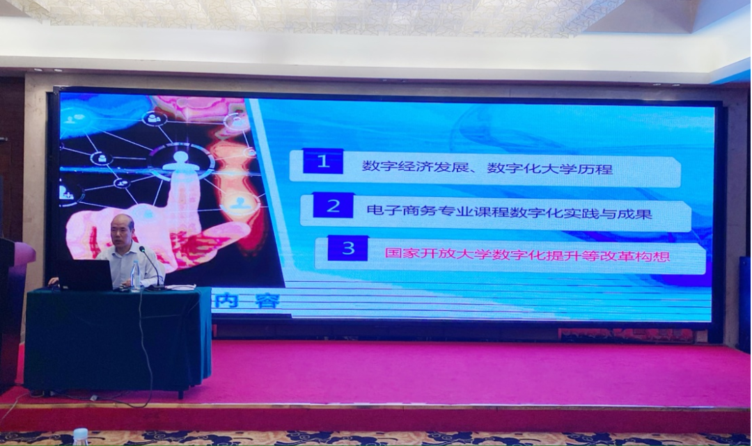 在學術沙龍環(huán)節(jié),我校教學支持部經(jīng)濟管理系張鎖通教授應邀作了題為“電子商務專業(yè)課程數(shù)字化實踐與改革構想”的報告。報告簡要介紹了我國數(shù)字經(jīng)濟發(fā)展概況、數(shù)字化大學建設歷程;展示了河北開放大學電子商務專業(yè)課程數(shù)字化教學實踐成果;重點闡述了開放大學數(shù)字化提升的改革構想、專業(yè)課程設置與1+X融合、資源建設及雙師型師資培養(yǎng)等方面的深入思考,引起了與會教師的熱烈反響。在研討環(huán)節(jié),張鎖通教授就河北開放大學省開課程數(shù)字化教學實踐、工商管理案例大賽組織、網(wǎng)絡教學團隊建設和課程思政建設等具體做法及取得的成果進行了交流分享。與會教師積極參與討論,互鑒經(jīng)驗,為推動開放大學工商管理類專業(yè)數(shù)字化轉(zhuǎn)型、提高專業(yè)人才培養(yǎng)質(zhì)量起到了積極的作用。