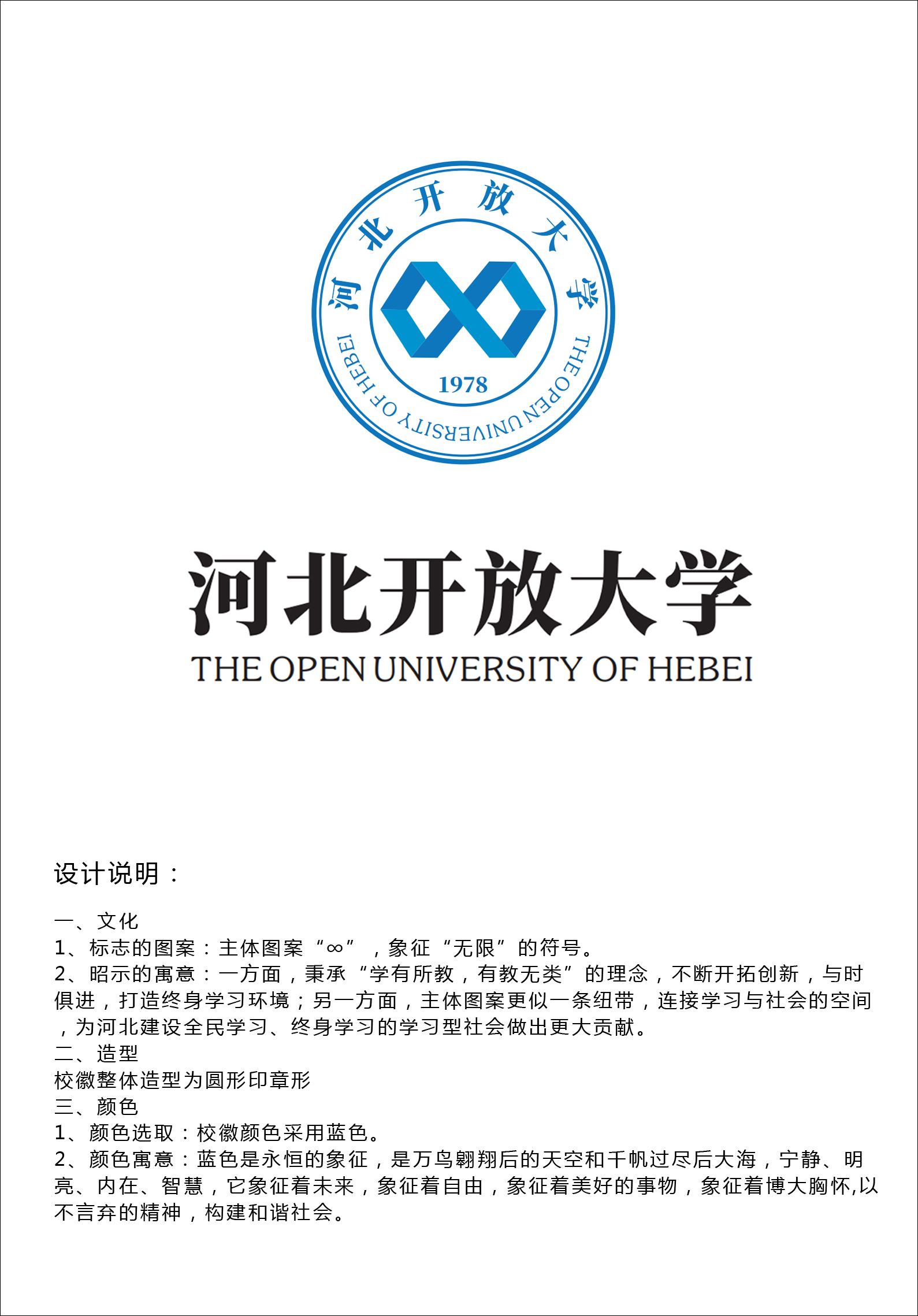 為致敬河北電大建校40年的跨越發展和將要實現的向河北開放大學轉型升級,自2019年4月5日起我校面向社會公開征集河北開放大學校徽。征集活動開展以來,得到了學校廣大師生和社會各界的廣泛關注和積極參與,兩個月共收到應征作品46件。學校先后進行了校徽作品的校內初選和專家評審工作,最終評選產生6件入圍作品。現予以公布。