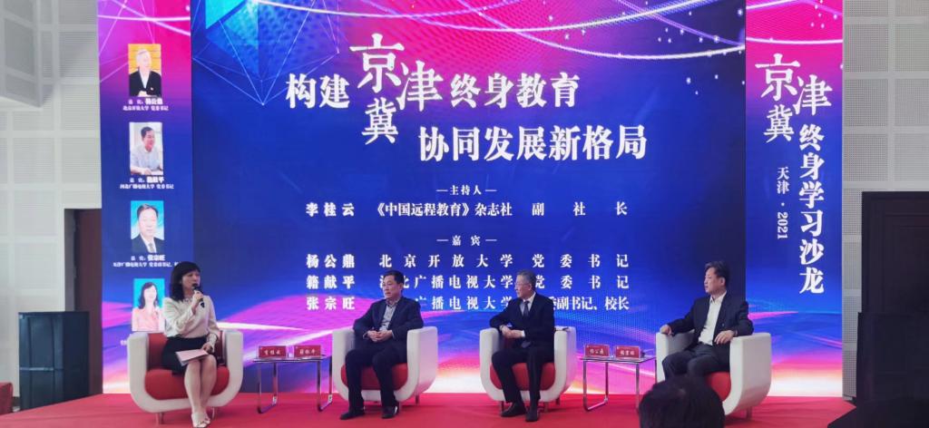 在京津冀終身教育論壇上,籍獻(xiàn)平書記與北京開放大學(xué)黨委書記楊公鼎,天津廣播電視大學(xué)黨委副書記、校長張宗旺以“構(gòu)建京津冀終身教育協(xié)同發(fā)展新格局”為主題,圍繞開放大學(xué)在構(gòu)建服務(wù)全民終身學(xué)習(xí)教育體系中的角色、定位和任務(wù),開放大學(xué)綜合改革方案,三地開放大學(xué)共建共享機制等方面,深入開展研討交流。