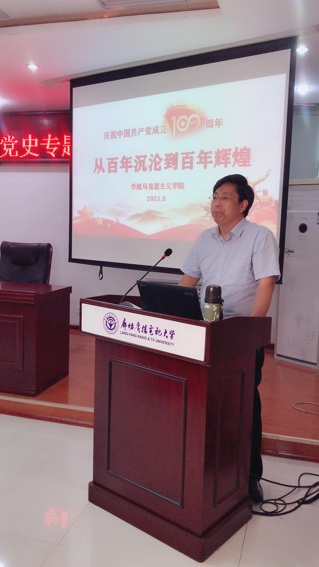 為進一步推動學校黨史學習教育,加強對成人學生的思想政治教育,按照河北開放大學“紅色‘冀’憶·云實踐”達人直播帶學活動安排部署,6月10日下午,廊坊電大在學校多功能報告廳舉辦“傳黨史聲音·承紅色基因”黨史專題宣講。此次活動采用現場宣講和冀云APP網上直播相結合的方式進行。