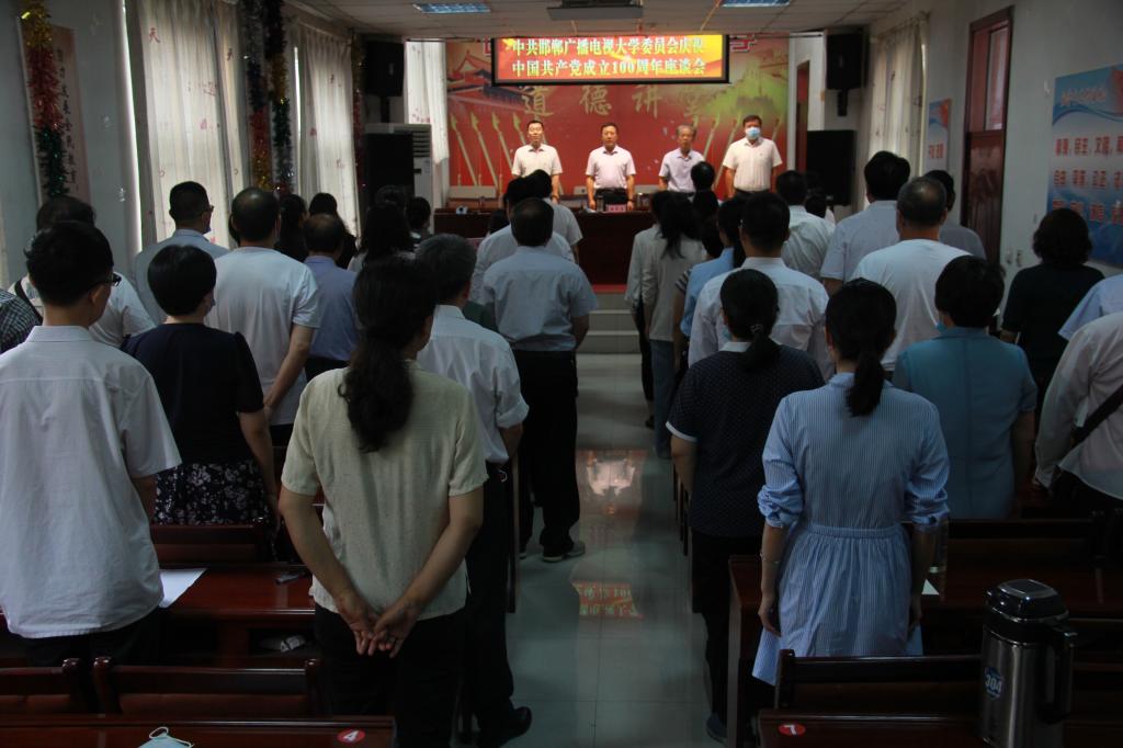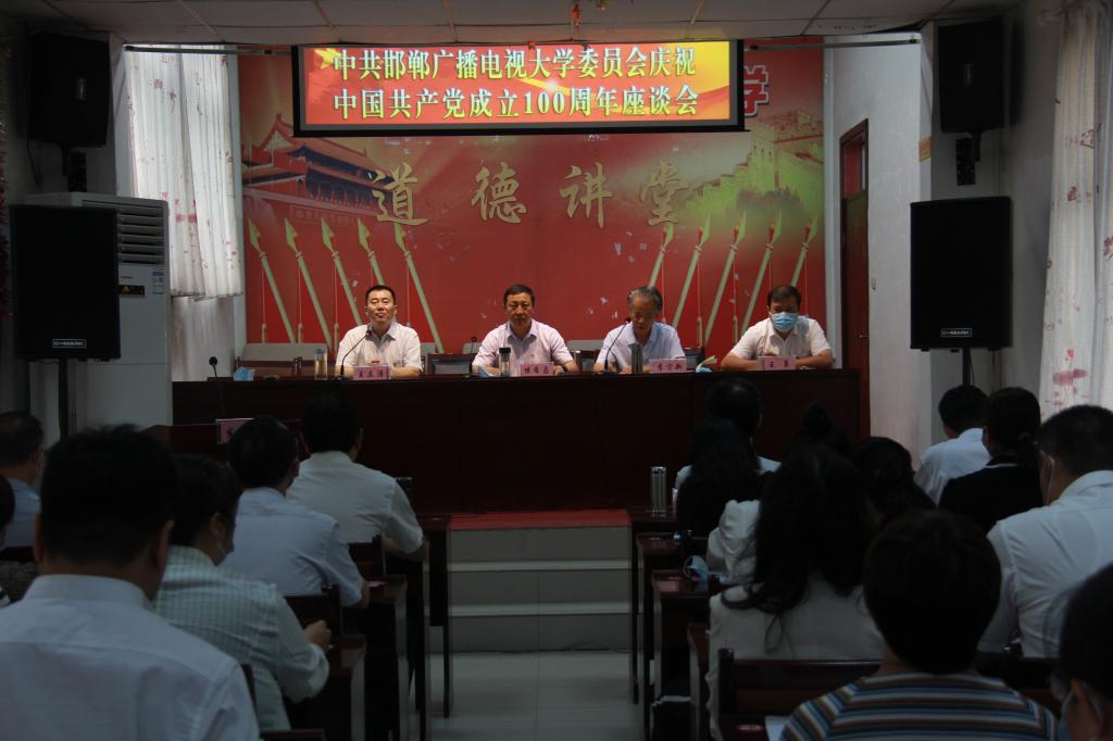 2021年7月1日上午,邯鄲電大召開慶祝中國共產黨成立100周年座談會。黨委書記侯希昌,副書記、校長李守新,副校長王立濤、王勇及謝國棟、劉建民、秦曉方、王劍峰、李廣平等校領導出席會議。全體教職工參會。會議由李守新同志主持。