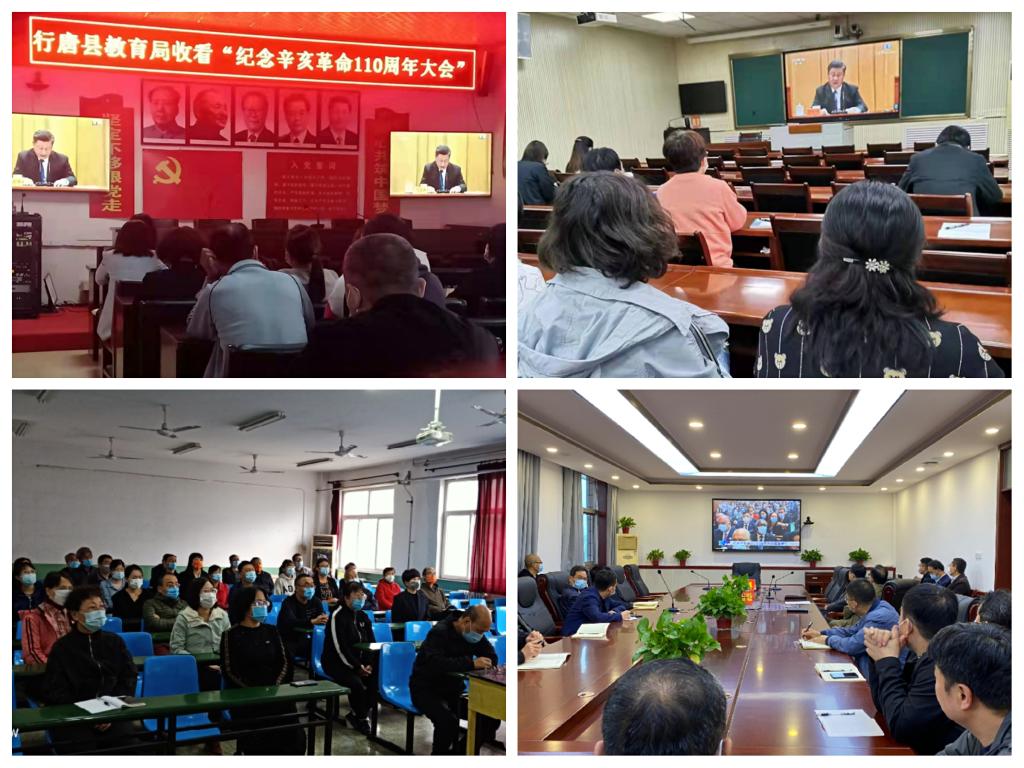 各縣級電大干部黨員通過多種方式收看收聽紀念辛亥革命110周年大會盛況。石家莊開放大學黨委領導和全體教職員工分別在第二學術報告廳和校播劇場集中收看收聽了大會的實況直播。