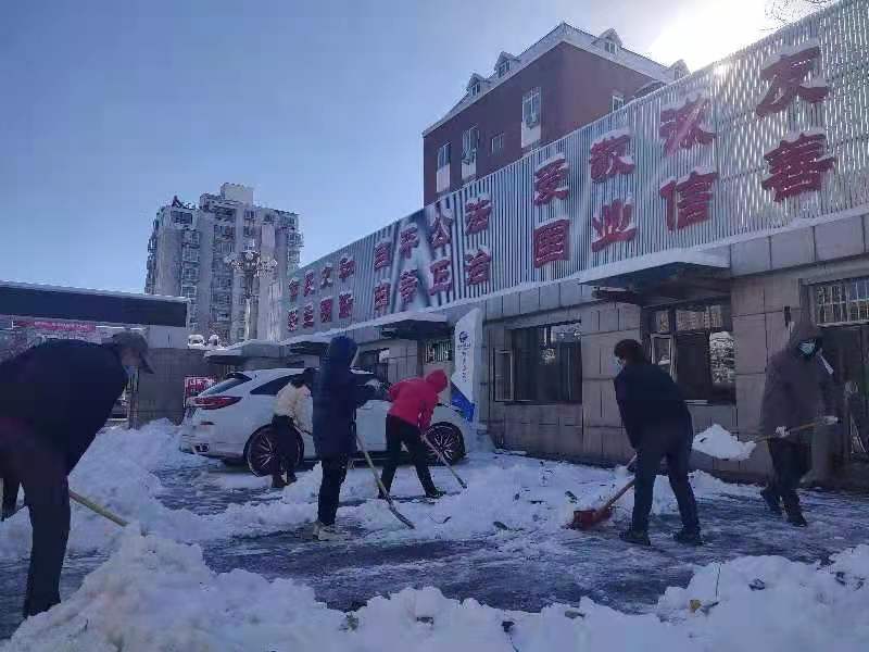 學校將此次掃雪活動作為黨史學習教育我為群眾辦實事活動的一次具體內容,作為展示學校教職工良好風貌的實際舉措,全面開展學校門前三包清掃活動,確保周圍無積雪,無結冰,環境干凈,道路暢通。