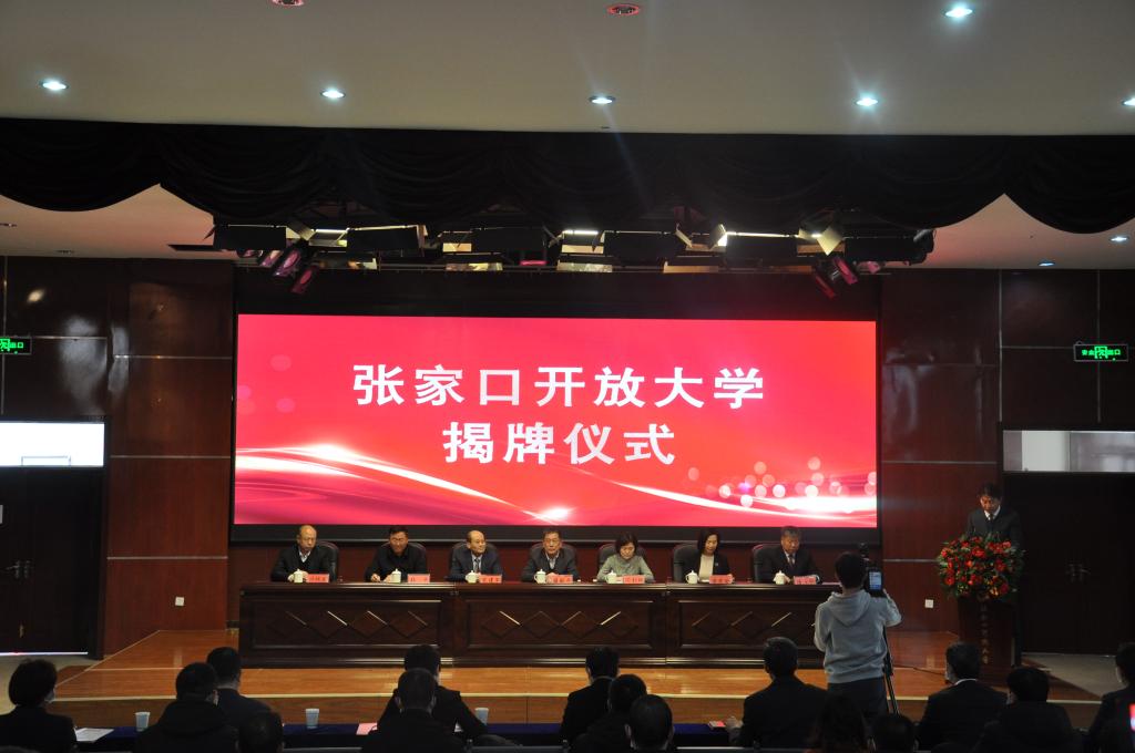 12月18日上午,張家口開放大學揭牌儀式隆重舉行。河北開放大學黨委書記籍獻平,張家口市政府副市長閆利艷,張家口市政府副秘書長宋建軍,市委組織部四級調研員黃秀榮,張家口市委教育工委書記、市教育局局長杜平,市教育局副局長賀志英,張家口市職業技術教育中心黨委書記、校長李雪梅和副書記王玉民、原張家口廣播電視大學黨委書記許桂友,各縣區電大書記、校長參加了揭牌儀式。揭牌儀式由張家口開放大學校長張宏文同志主持。