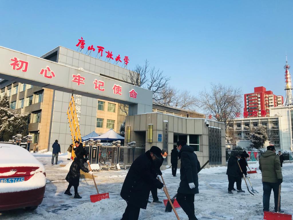 雪花片片隨風(fēng)舞,寒枝點(diǎn)點(diǎn)梅花香。2月12-13日,一場(chǎng)突如其來的大雪把校園妝點(diǎn)成一片銀裝素裹的世界,美麗的雪景帶來了如畫風(fēng)景和清新空氣,讓人在興奮的同時(shí)也給出行帶來了許多不便。為切實(shí)保障學(xué)校門前市民出行安全和教職員工出行便利,維護(hù)校園道路暢通。2月14日一早,唐山開放大學(xué)領(lǐng)導(dǎo)班子成員帶領(lǐng)全體教職工犧牲假期休息時(shí)間到校積極開始掃雪工作。