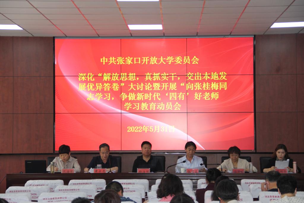 5月31日下午,張家口開放大學召開“解放思想,真抓實干,交好本地發展優異答卷”大討論暨開展“向張桂梅同志學習,爭做新時代‘四有’好老師”學習教育動員大會,對全校就如何開展好活動進行工作部署。張家口開放大學黨委書記楊汝明出席會議并講話,黨委班子成員、全體教職工參加會議。會議由張家口開放大學黨委副書記、校長張宏文同志主持。