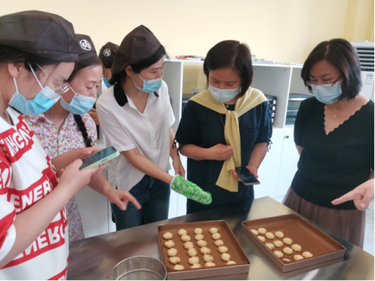 烘焙室建設(shè)期間,新冠疫情反反復(fù)復(fù),建設(shè)工作也隨之走走停停。經(jīng)冬復(fù)春,一直到21年下半年才初具規(guī)模。隨之而來的是大量的、瑣碎的、平時很難一時間湊齊的設(shè)備、工具、材料的購置,似乎是永無止境。這考驗的不僅是廊坊社區(qū)教育人的細(xì)心,更考驗著我們對這項事業(yè)的熱誠。從學(xué)校黨委、相關(guān)科室,再到教師團隊,大家心往一處想,勁往一處使,擰成一股繩,攻克一個又一個難關(guān)。在備齊了第一次課所需材料之后,我們合閘送電,進行烘焙課的演練。演練,既是五個人的教師團隊在體驗室的集體備課、共同操作,也是調(diào)試、檢驗設(shè)備,發(fā)現(xiàn)問題的過程。