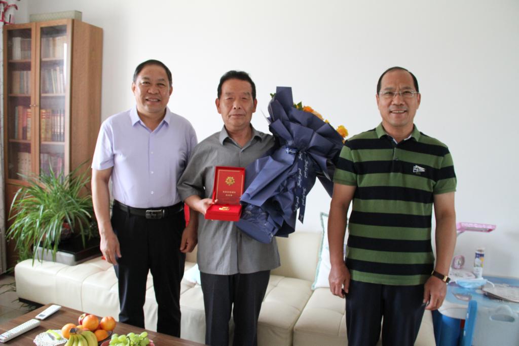 6月29日下午,在“七一”建黨節來臨之際,滄州開放大學黨委書記熊俊杰,校長崔學強走訪慰問了學校黨齡滿50周年的老黨員——滄州開放大學原校長張興國同志,為他送上由中共中央頒發的“光榮在黨50年”紀念章及節日的問候。