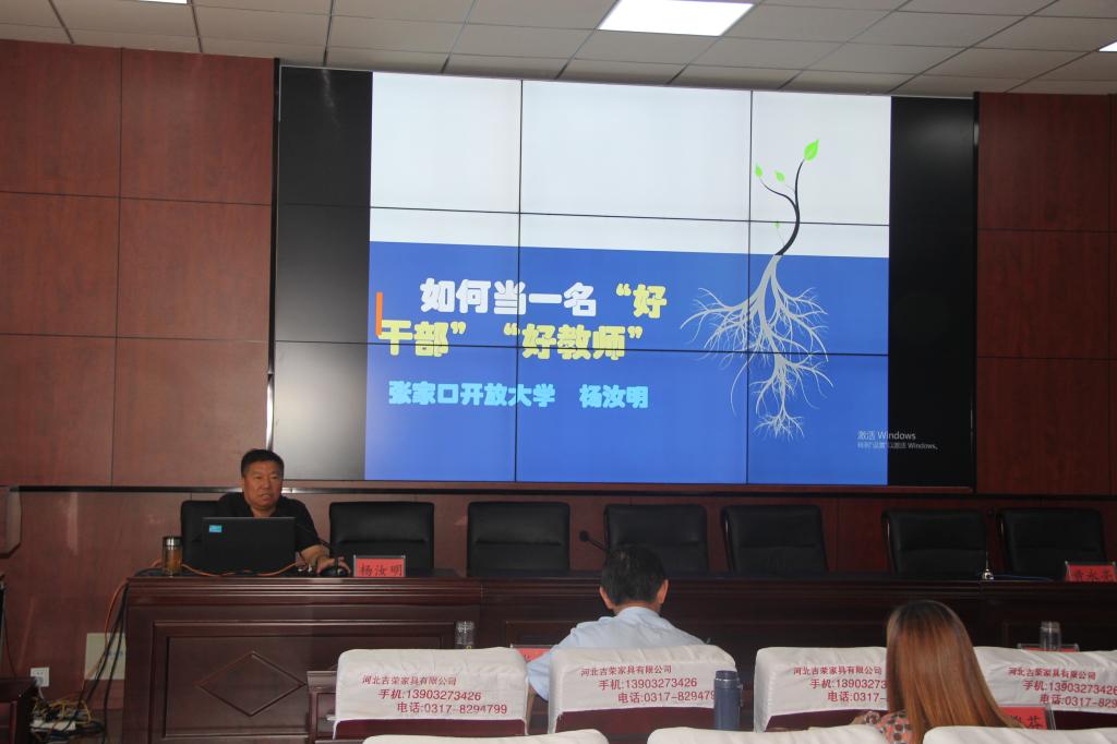 為學(xué)習(xí)貫徹近期張家口市委關(guān)于深入推進(jìn)“解放思想、真抓實(shí)干,交好本地發(fā)展優(yōu)異答卷”大討論和張家口市委教育工委開(kāi)展“向張桂梅同志學(xué)習(xí),爭(zhēng)做‘四有’好老師”學(xué)習(xí)教育活動(dòng),進(jìn)一步統(tǒng)一思想、提高認(rèn)識(shí),推動(dòng)全校上下形成解放思想、轉(zhuǎn)變作風(fēng)、改進(jìn)工作的良好氛圍,凝聚起推進(jìn)學(xué)校“爭(zhēng)創(chuàng)一流、走在前列”強(qiáng)化內(nèi)涵建設(shè)的強(qiáng)大動(dòng)力。7月21日,張家口開(kāi)放大學(xué)召開(kāi)解放思想大討論干部培訓(xùn)專題教育,由學(xué)校黨委書(shū)記楊汝明作題為《如何當(dāng)一名“好干部”“好教師”》的專題講座。
