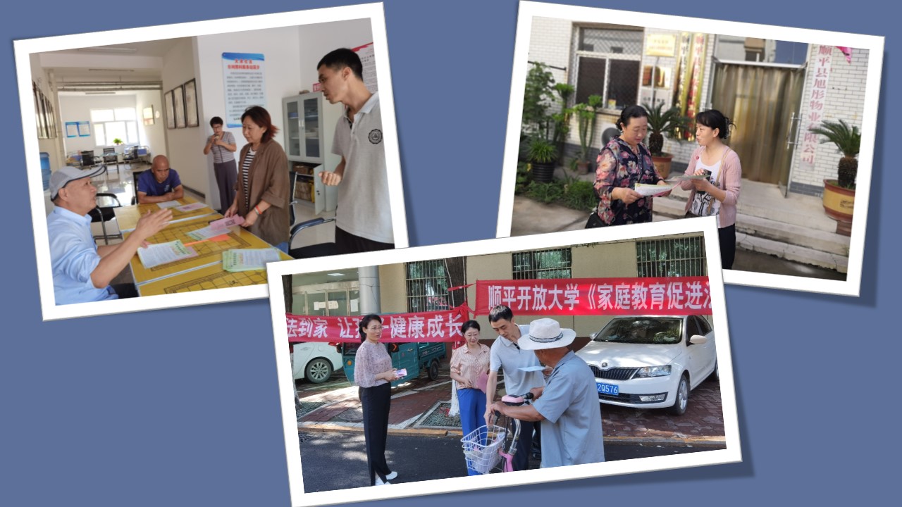 為引導(dǎo)家長科學進行家庭教育,護航未成年人健康成長,近日,順平開放大學開展《家庭教育促進法》進社區(qū)宣傳活動。
