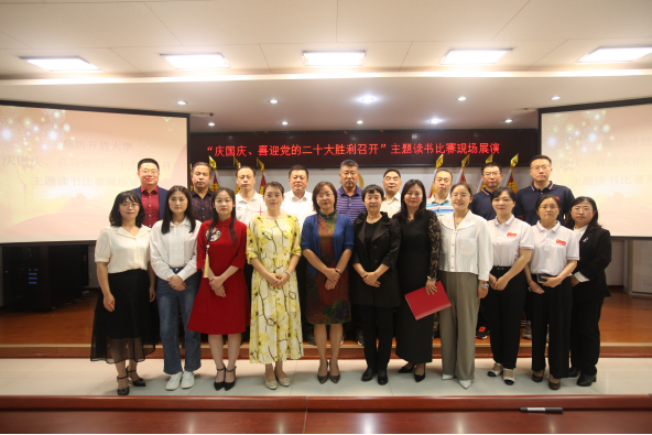 金秋時節,在舉國歡慶祖國73周年華誕之際,按照廊坊市委宣傳部、市委教育工委《關于深入學習貫徹習近平總書記致信首屆全民閱讀大會賀信精神 奮力做好新時代全民閱讀工作的通知》要求,為深入推進全體師生閱讀工作,展現開放大學積極向上的精神狀態,營造黨的二十大勝利召開濃厚氛圍,9月30日上午,廊坊開放大學在三樓報告廳隆重舉辦“慶國慶 喜迎黨的二十大勝利召開”主題讀書比賽現場展演活動,全校師生共饗閱讀盛宴。