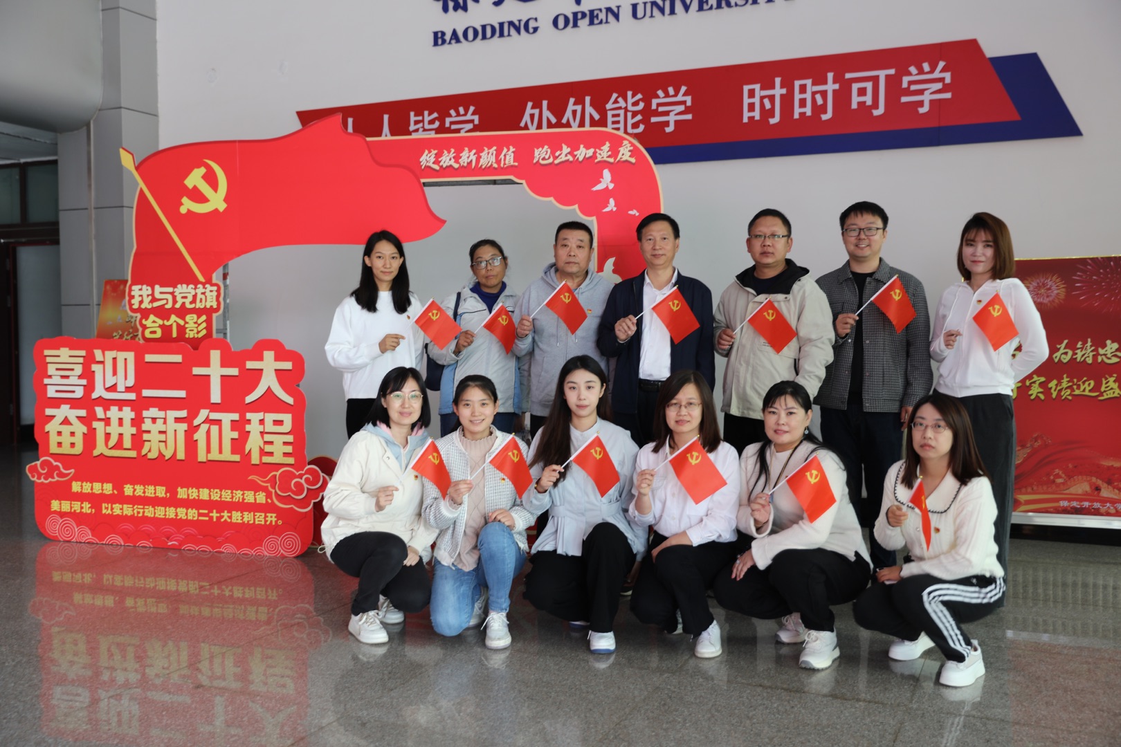 為迎接黨的二十大勝利召開,激勵全校黨員不忘初心、牢記使命,近日,保定開放大學開展“我與黨旗合個影”主題活動,引導全體黨員厚植愛黨、愛國、愛社會主義的情感,展示“請黨放心,強國有我”的精神風貌,用實際行動夯實黨員對黨忠誠的政治底色。