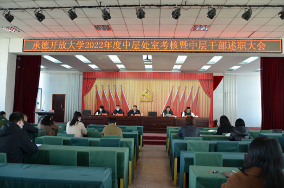 為了進一步提高學校中層機構的工作效率和工作質量,增強部門凝聚力和創優爭先的意識,加強干部隊伍建設,全面、客觀、公正地評價中層干部綜合素質和履行職責情況,加強對中層干部的管理與監督、激勵與約束,2月28日,承德開放大學召開2022年度中層處室考核暨中層干部述職大會。承德開放大學黨委書記姚鋼乾,黨委副書記蘇衛兵,副校長蘇宏偉,紀委書記魏巍,副校長趙越及全體教職工到場參會。會議由蘇宏偉主持。