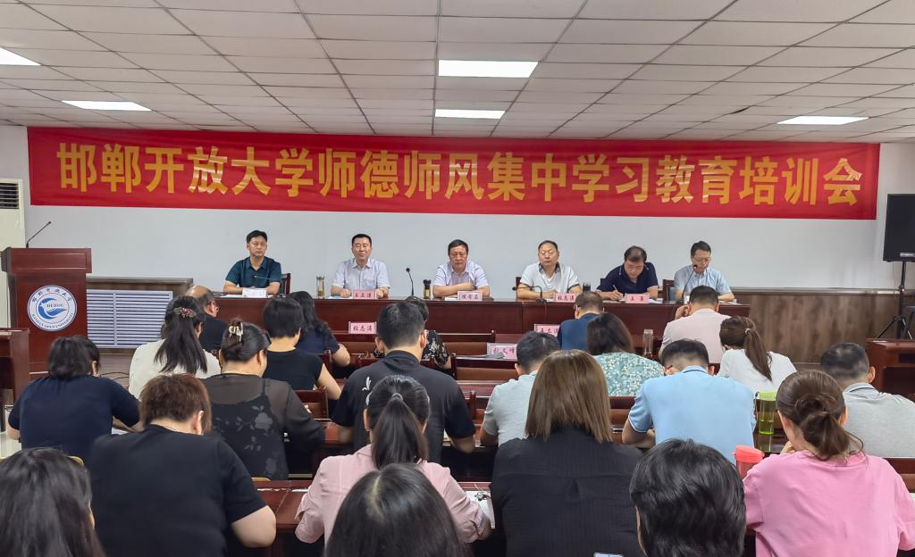 2023年7月6日上午,按照市教育局的通知要求和校黨委的統一安排,邯鄲開放大學在四樓會議室組織召開了師德師風集中學習教育培訓會。會議由校長張志濤主持,校領導班子全體出席了會議,全體教師參加了會議。