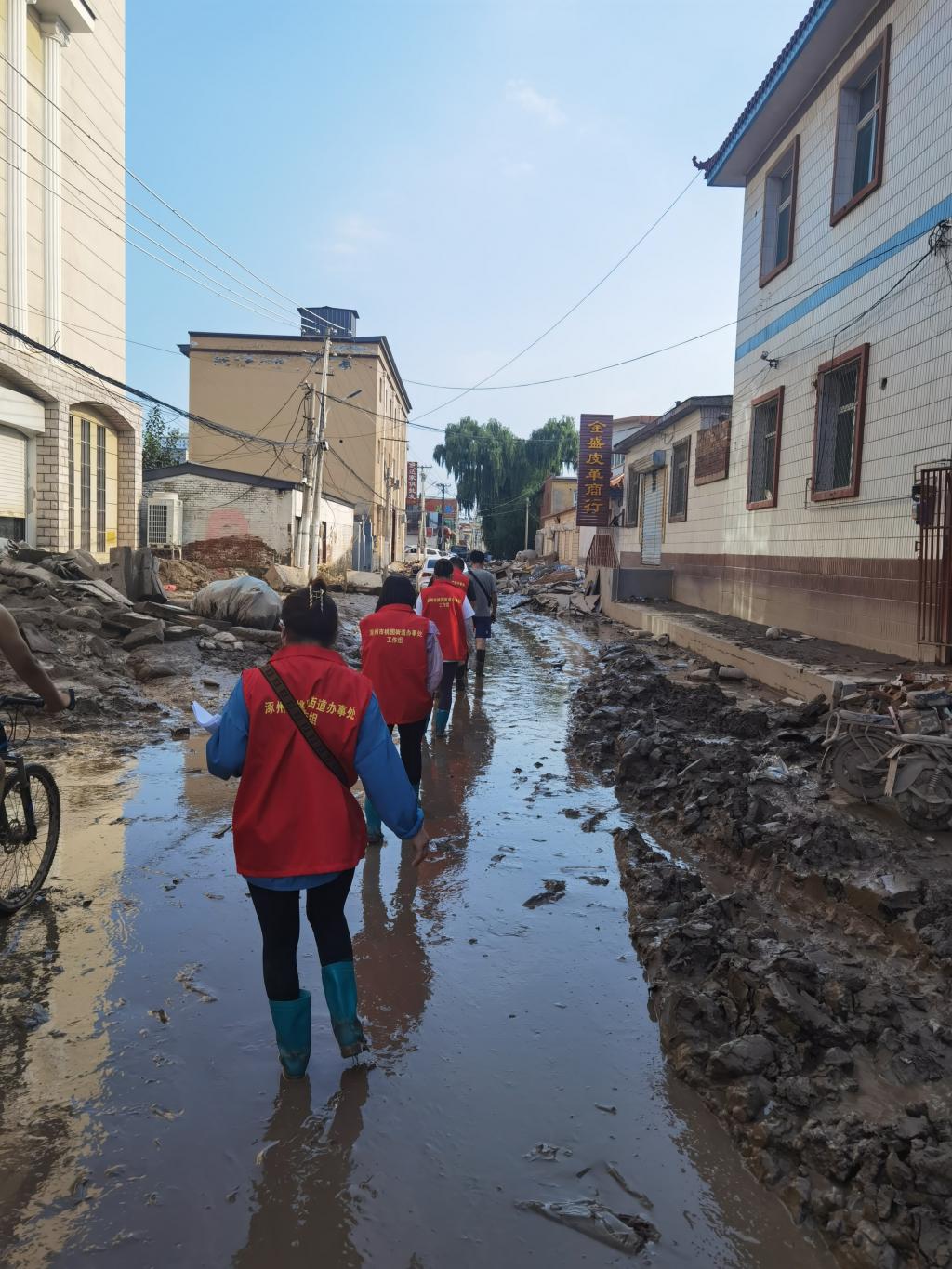 根據(jù)市委市政府關(guān)于防汛救災(zāi)的工作要求,涿州市教體局第一時(shí)間成立幫扶工作隊(duì),涿州開放大學(xué)共派出11名黨員干部到受災(zāi)嚴(yán)重的桃園辦事處,開展防汛救災(zāi)幫扶工作。