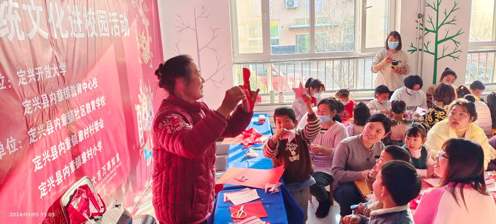 為弘揚優秀傳統文化,營造濃厚的校園人文教育氛圍,1月5日下午,定興開放大學與定興縣內章鎮社區教育學校在內章鎮章村小學舉辦傳統文化進校園活動。