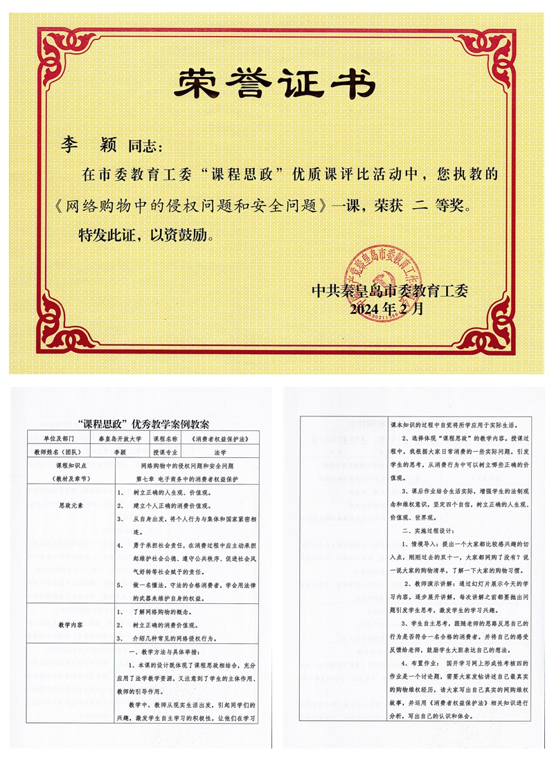 秦皇島開放大學始終堅持立德樹人的根本任務,深入貫徹落實教育部《高等學校課程思政建設指導綱要》(教高〔2020〕3號),以專業建設為出發點,實現知識傳授和價值引領協同發展,切實推進全校課程思政建設。在濃厚的思政育人氛圍中,涌現出一批建設卓越成效的課程思政競賽獲獎作品,通過優化培養方案、課程教材建設、教育教學改革、師資人才培養等切實提升課程思政育人成效,為推動課程思政與思政課程同頻共振起到了示范引領作用,宣傳和推廣了課程思政建設的有益經驗。