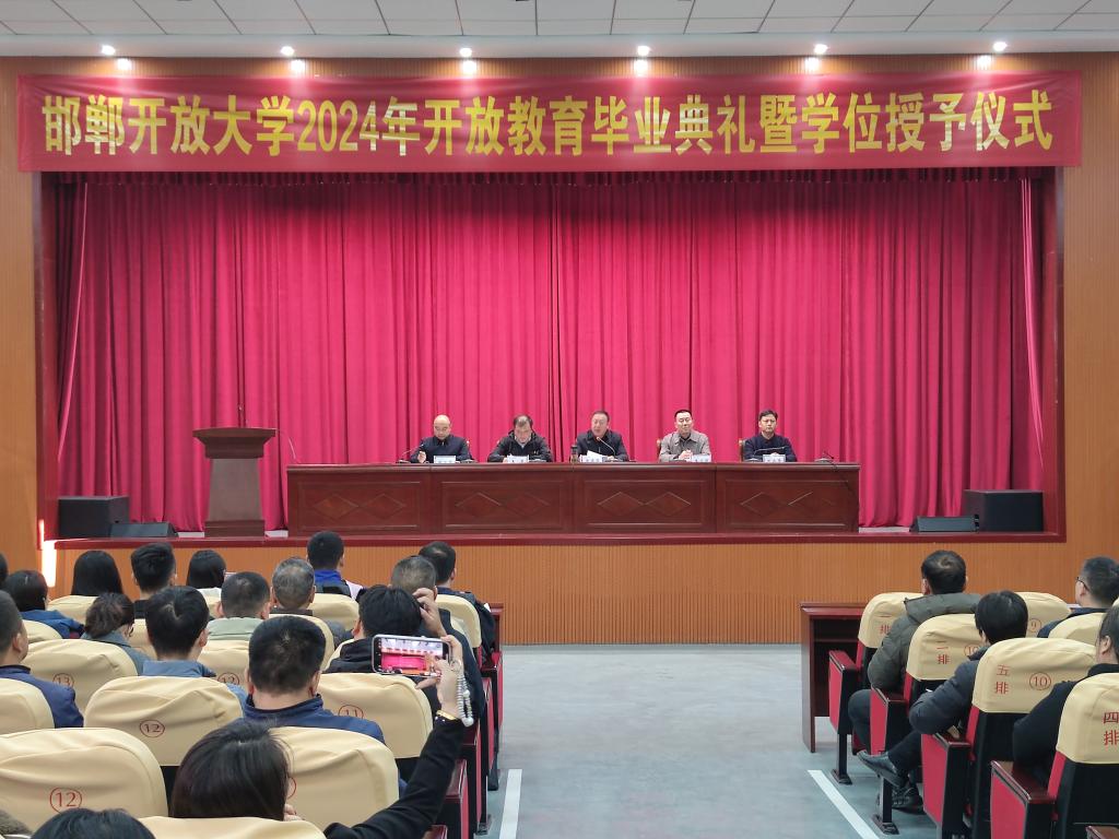 11月26日上午,邯鄲開放大學(xué)2024屆畢業(yè)典禮暨學(xué)位授予儀式在學(xué)校大禮堂舉行。校黨委書記侯希昌、副校長(zhǎng)王立濤、副校長(zhǎng)王勇、紀(jì)委書記武會(huì)章、副校長(zhǎng)敬萬(wàn)祥出席,全體教職工及2024屆畢業(yè)生代表等參加典禮,典禮由副校長(zhǎng)敬萬(wàn)祥主持。