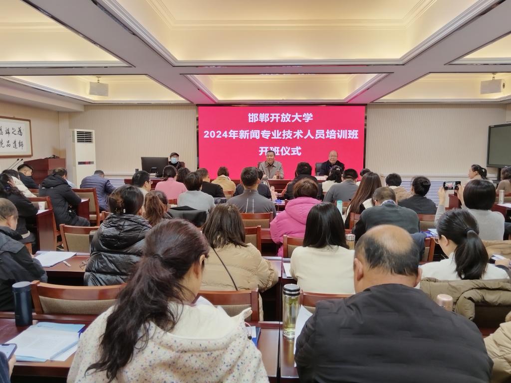 根據河北省新聞出版局、河北開放大學通知要求,2024年11月29日至12月1日,邯鄲開放大學成功舉辦2024年新聞專業技術人員繼續教育第一期培訓班,全市新聞專業技術人員107人參加培訓。11月29日上午9:00舉行了簡短開班儀式,邯鄲開放大學黨委委員、副校長王立濤致辭,社區教育學院院長劉煥奇主持。