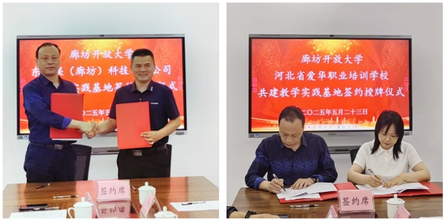 5月23日上午,廊坊開放大學與河北愛華學校、東合聯(廊坊)科技有限公司舉行“校-校-企”教學實踐基地共建簽約儀式。此次合作標志著廊坊開大在深化產教融合、創新人才培養模式方面邁出堅實一步。學校將充分發揮在成人學歷教育、在線教育等方面的優勢,愛華學校貢獻其在職業教育領域的豐富經驗,東合聯(廊坊)科技有限公司提供真實產業需求和實踐平臺。