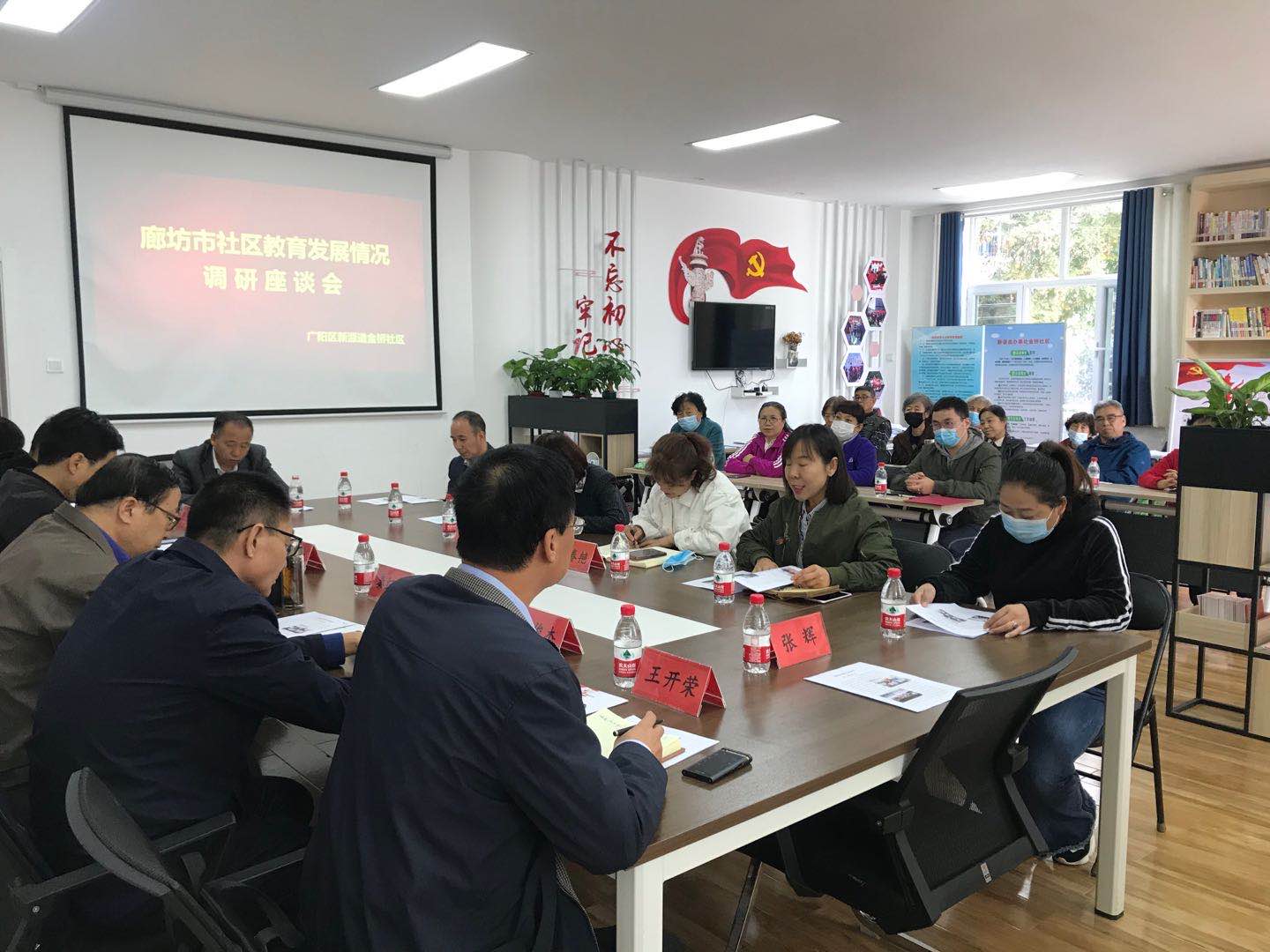 10月14日,省教育廳專家組秦靖祥一行四人到廊坊調研社區教育發展情況。市教育局職成教科科長王開榮,副科長沙鳳林,廊坊電大副校長李琥、副校長姚東升陪同調研并參加座談。