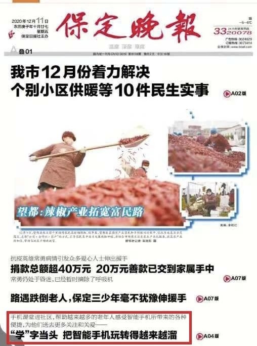 “社區居民需要什么,我們就開展什么。”保定社區教育學院相關負責人向記者介紹,現在的老年人對學習使用智能手機有著迫切的需求,例如網上認證、下載應用、網上購物、網上繳費、掃健康碼、掌上公交等,都跟他們的日常生活息息相關。“我們選擇了有相關經驗的老師作為志愿者前來講課,老年學員們反響很好,今后我們還將持續開展‘公益課堂進社區’系列培訓活動,并培養一定數量的社區工作者和志愿者參與進來,編寫智能手機使用教程,提升老年人生活的幸福指數,推動全民終身學習的普及。”