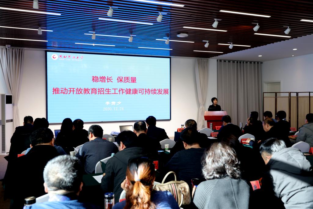會議對2020年度縣級電大綜合評估先進單位和個人、開放教育招生工作突出貢獻單位、優勝單位、先進單位及優秀個人進行了表彰。涿州、曲陽、滿城、蠡縣四個電大校長分別就教學、考務、招生、社區教育等方面作典型發言,介紹辦學經驗。校長李樹進對保定電大本年度疫情防控、招生、教學、考務、社區教育、信息化建設、系統評估、師資隊伍建設、扶貧等工作進行了全面總結,客觀分析了存在問題,并對明年工作做出部署。要求各縣級電大以十九屆四中、五中全會精神為指導,認真落實《國家開放大學綜合改革方案》,不斷深化系統建設,加強教師隊伍建設,推進市、縣開放大學建設。會后,與會縣校校長圍繞推進開放大學建設,提高系統辦學水平進行了分組討論。