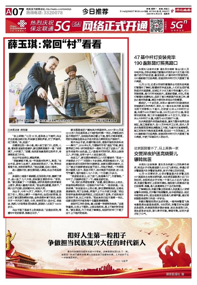 薛玉琪是保定廣播電視大學副校長,2017年12月至2019年7月任曲陽縣上下跑村駐村第一書記。盡管現在已經不再駐村了,但他始終掛記著上下跑,接長不短來看看,同時也探望包括馮合子在內的自己幫扶的五戶脫貧戶。