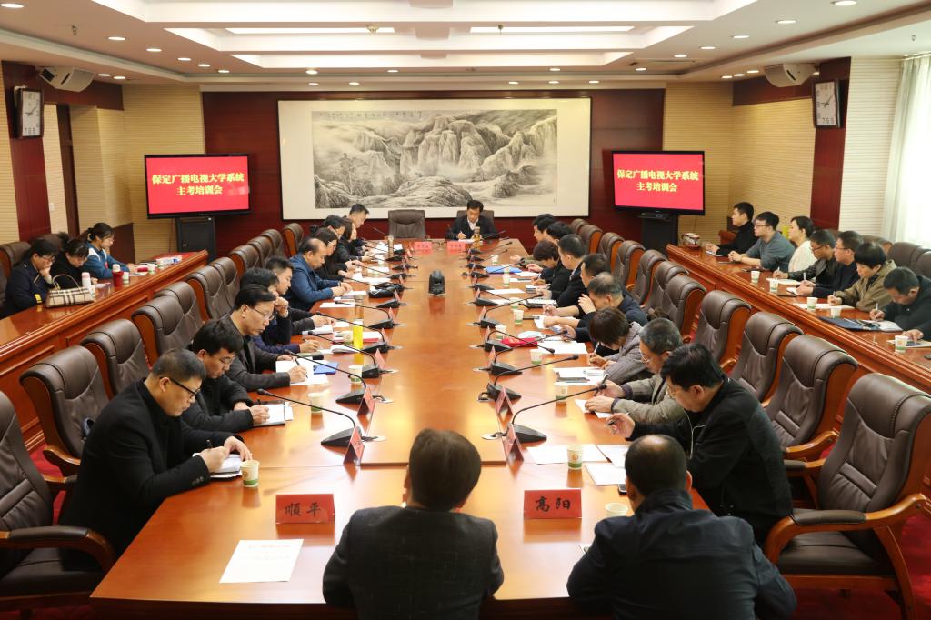 24日上午,保定電大在八樓會議室召開系統(tǒng)主考培訓會。21個縣級電大校長及相關處室業(yè)務負責人50余人參加會議,副校長薛玉琪主持會議。