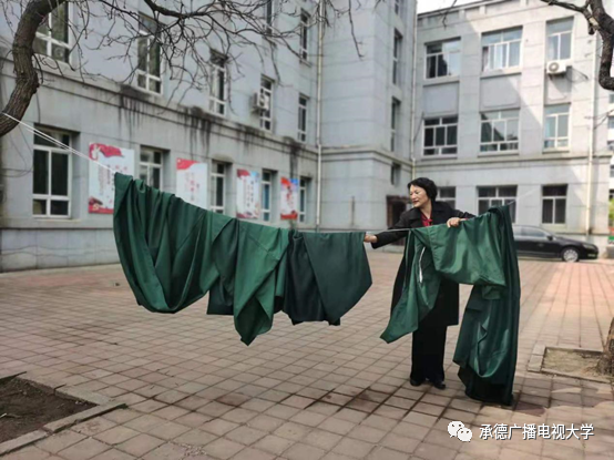六樓大會議室是承德電大開展大型會議和活動的主要場所,利用率較高,桌布需要經常進行保潔。第四支部黨員整體年齡偏大,加上男同志居多,而桌布數量多,長度大,清洗起來有一定難度,在副校長張桂春的號召帶領下,承德電大開放教育學院教師積極加入到本次活動當中來,從裝袋到清洗再到晾曬,大家齊心協力,密切配合,井然有序。在清洗桌布的過程中,由于桌布沾水以后很沉重,晾曬過程有一定的難度,其他支部黨員主動熱心幫忙,加入到活動中來。