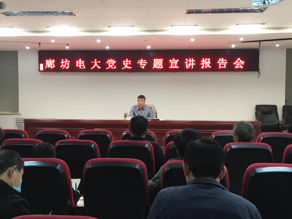 為認(rèn)真落實(shí)市委黨史學(xué)習(xí)教育領(lǐng)導(dǎo)小組工作要求和學(xué)校黨史學(xué)習(xí)教育部署,進(jìn)一步引導(dǎo)全校黨員干部從黨的百年偉大奮斗歷程中汲取前進(jìn)的智慧和力量,4月22日,廊坊電大在多功能報(bào)告廳舉行黨史專題宣講報(bào)告會,黨委書記、校長李河均為全體黨員和中層干部作專題宣講報(bào)告。