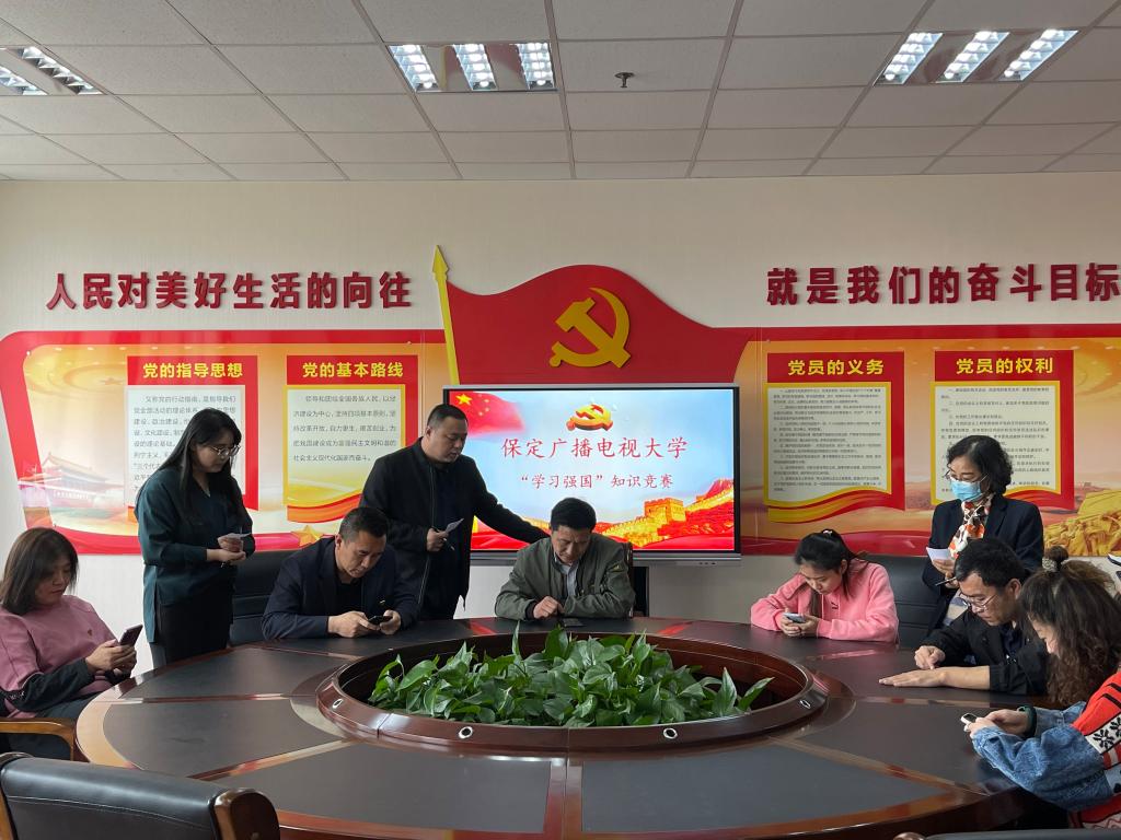 為進一步提升黨員同志利用“學習強國”平臺充實理論知識的積極性,持續推動黨史學習教育往深里走、往實里走、往心里走。4月30日,保定電大在黨員活動室舉辦“學習強國”知識競賽活動。