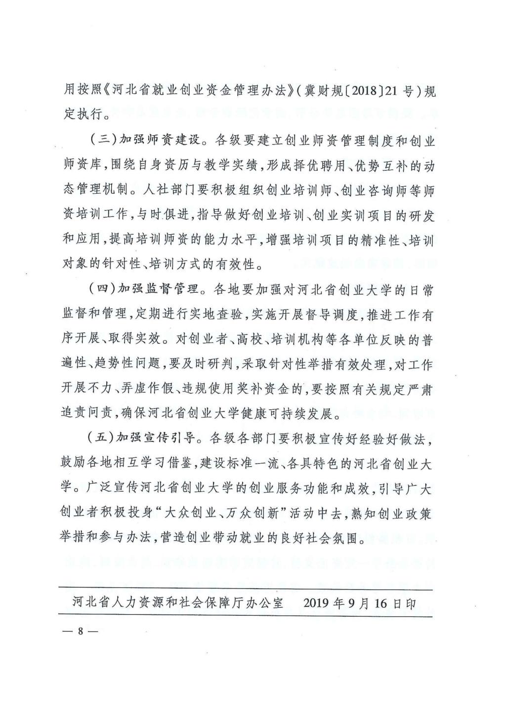 河北省人力資源和社會保障廳 河北省教育廳 河北省財政廳關于印發《關于創建河北省創業大學的指導意見》的通知